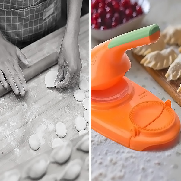 ¡Esta herramienta aplana la masa y luego sella los dumplings con una sola presión! Coloca la masa, presiona y disfruta de unos dumplings moldeados sin complicaciones, perfectos para días ajetreados o grandes reuniones.
