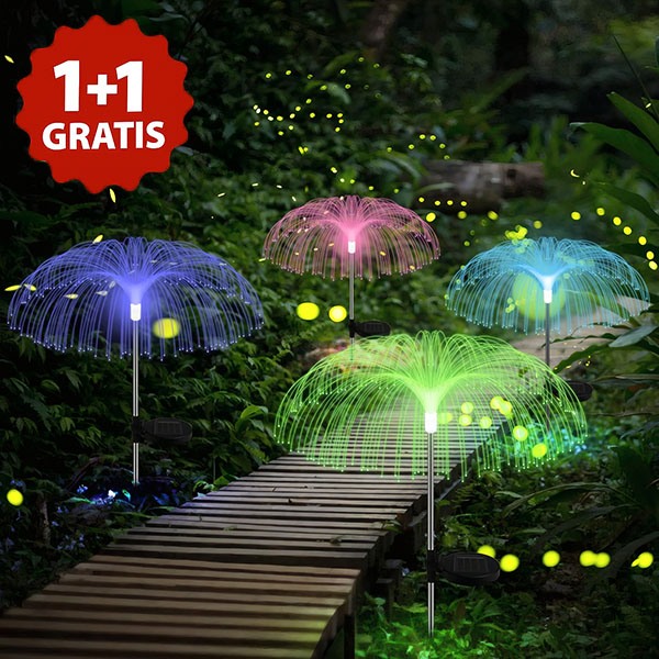 Añade un toque de magia a tu jardín, patio o sendero con las impresionantes luces solares RGB LUMIPALM en forma de medusa. ¡Gracias a nuestra oferta 1+1 GRATIS, obtienes el doble de belleza por el mismo precio!
